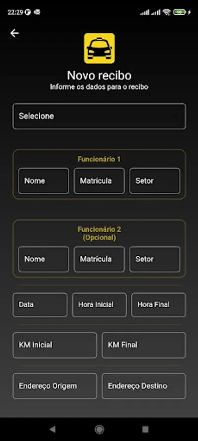 Application developed for the exclusive use of employees of the Bento Taxi fleet for issuing receipts and other utilities.