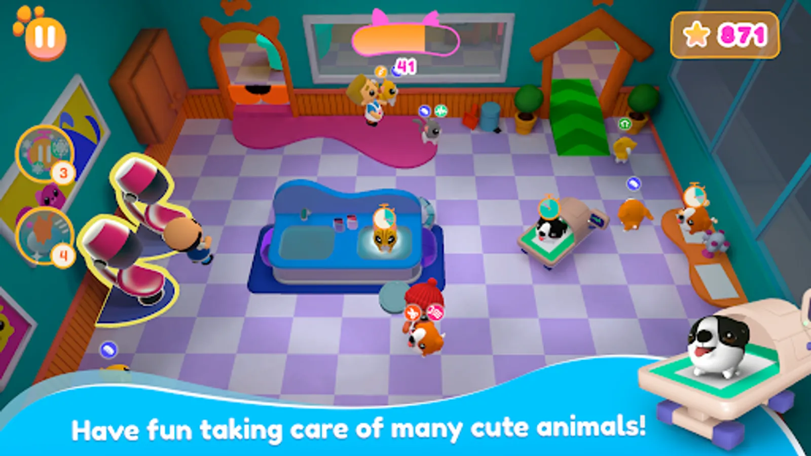 Master your skills and react quickly, setting the right priorities to take care of pets. You will be able to carry two animals with you, take advantage of this to take care of each dog and cat!