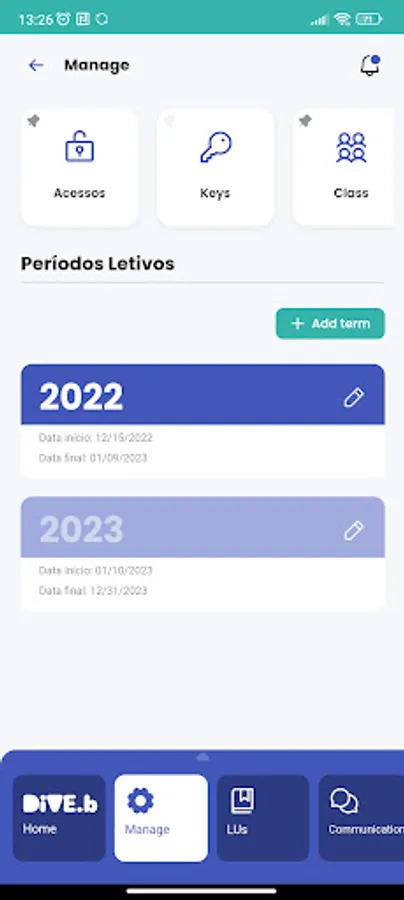 These are some of the resources available on the platform: games, animations, collaboration spaces, assessments, audios, videos, online classes, management and communication tools.