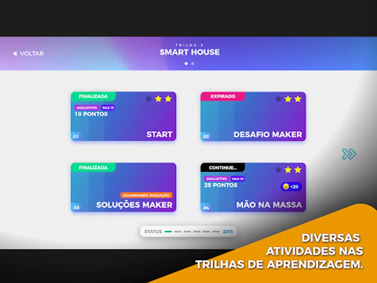 The Flow Maker Program was restructured and brings a virtual environment contextualized with the methodological organization of the solution. It is available to students in Elementary School, Early Years and Final Years. Anchored in the Maker culture, the STEAM movement and Design Thinking, the program privileges the development of collaborative experiences for the co-creation of creative solutions to complex problems.