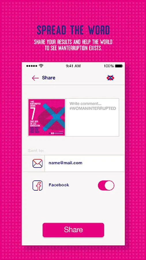 Woman Interrupted App uses the smartphone to detect and help reduce Manterrupting - that is what we call when men interrupt women unnecessarily. This behaviour stops women from expressing their ideas at work, at home and in society as a whole.
