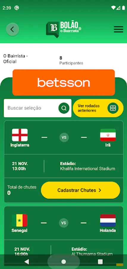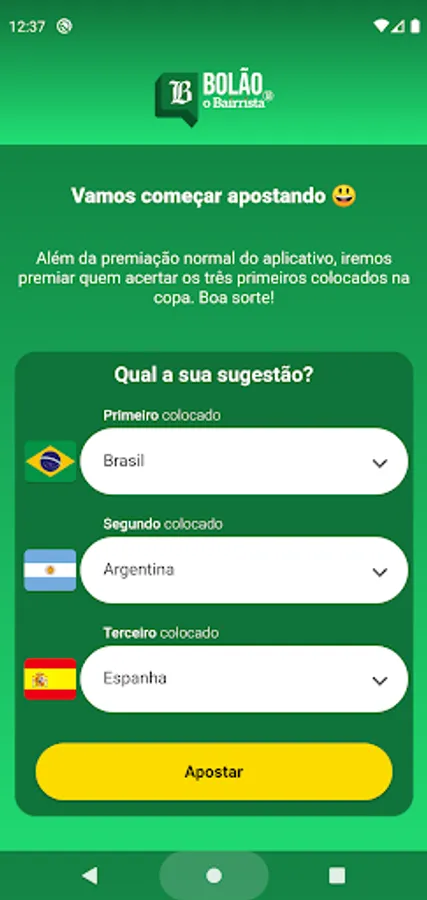 Bolão Bairrista is a platform to gather friends and have fun with football results. In Bolão do Bairrista you can create groups and compete with friends, neighbors, co-workers to see who understands the most about football. Whoever hits the exact score of the games and whoever hits the result adds points. Bolão Bairrista is 100% free and has prizes for the best guessers.