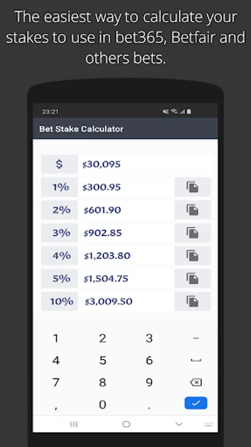This app allows you to calculate your stakes to use in multi bookmakers like: