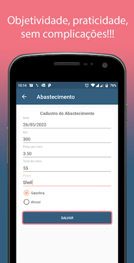 Application for registration of supply and calculation of average fuel consumption. This application was developed as an item in the developer's portfolio.