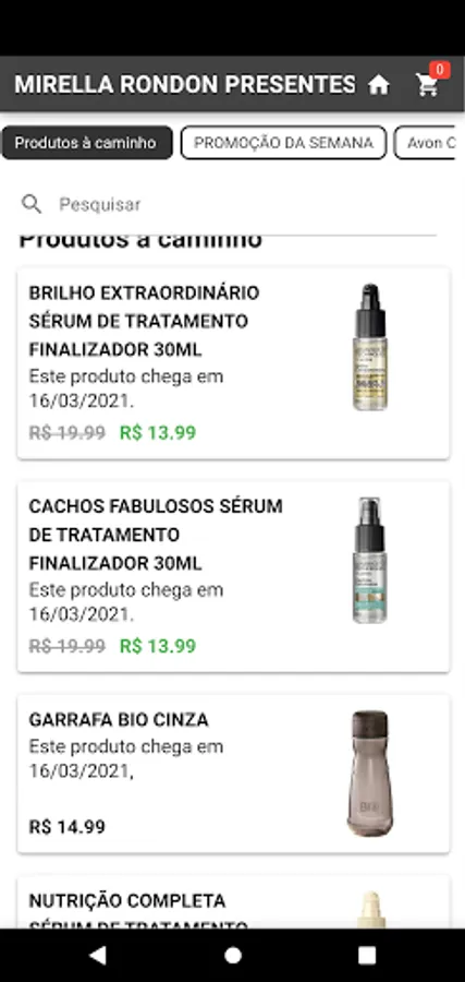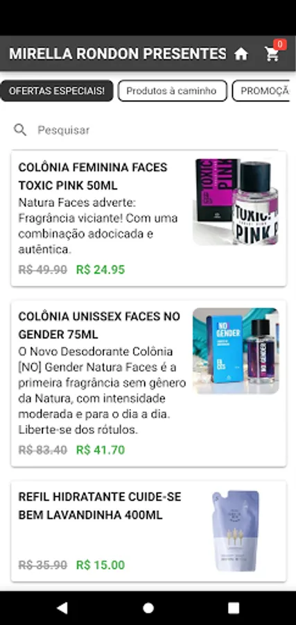 Mirella Rondon Gifts. Products for daily use and fine gifts. AteliArte, Natura, Avon, O Boticário and Jequiti. All in one application!