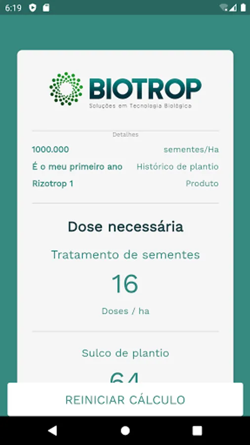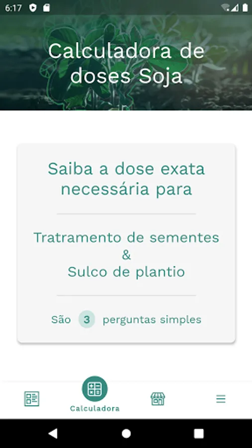 - Calculate the exact dose of bioinputs for soybean cultivation
