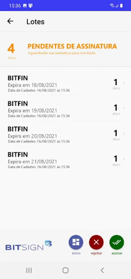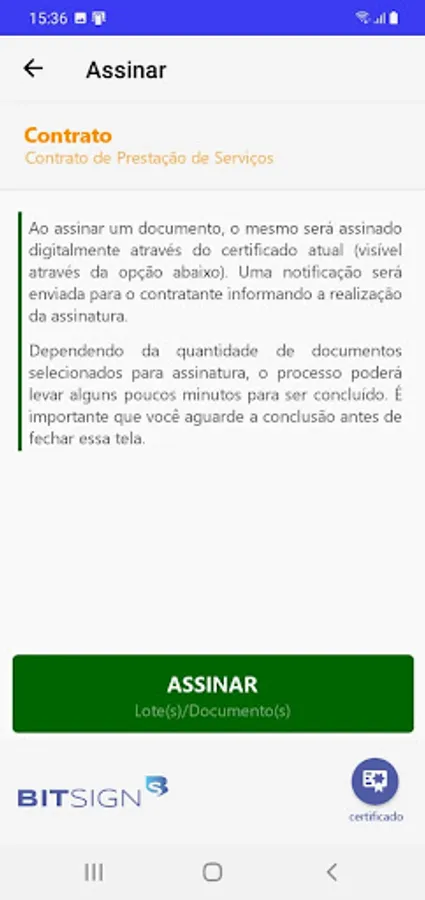 Application for monitoring and signing digital documents sent to the BITSIGN portal (https://www.bitsign.com.br), according to the standard defined by ICP-Brasil.