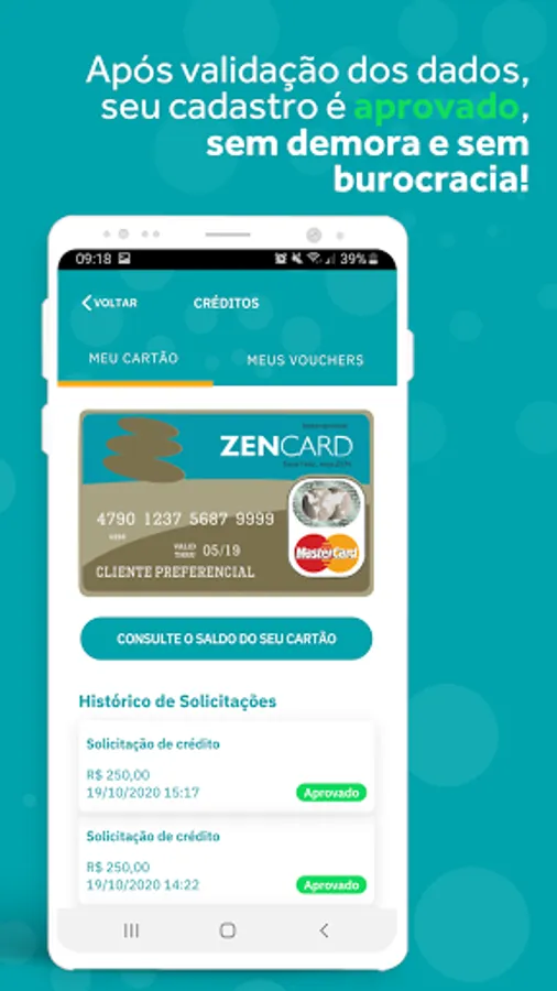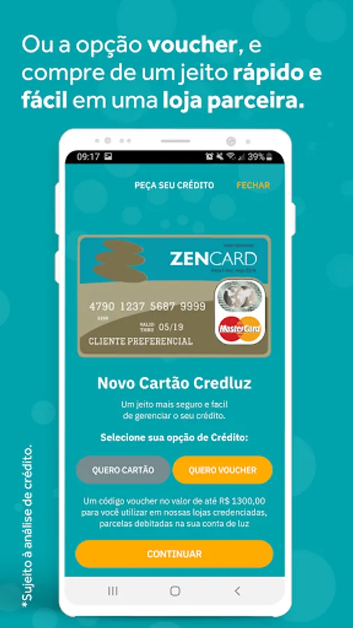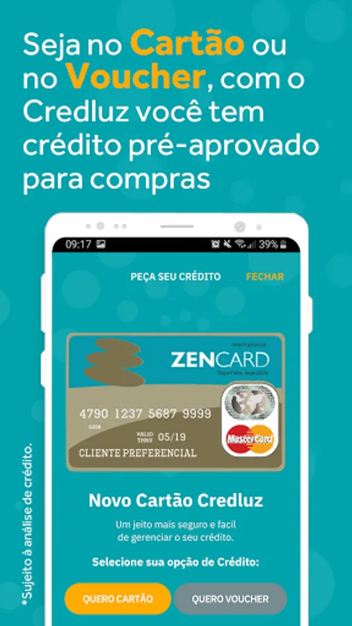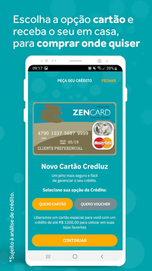 In addition to the possibility of choosing one of the hundreds of partner stores to make your purchases, you now have the option to choose the Zencard card, with a limit of up to R $ 1,200.00 to buy wherever you want. Just select the “card” option when requesting your credit and that's it, after the order is completed and approved, you will receive your card at home within 15 days.