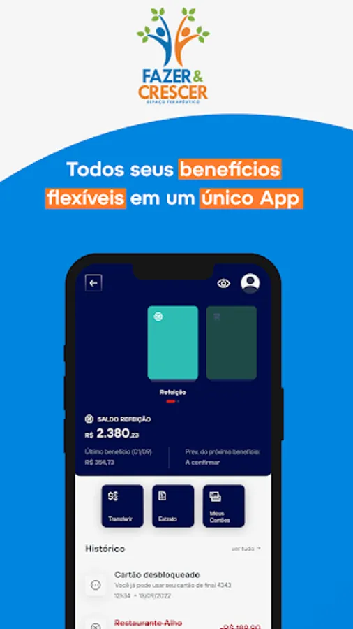 FazereCrescer Multi-benefits is an application from Biz Tecnologia in Meios de Pagamentos that offers a complete experience of flexible benefits in one place. With resources that facilitate access and control of your benefits, such as: