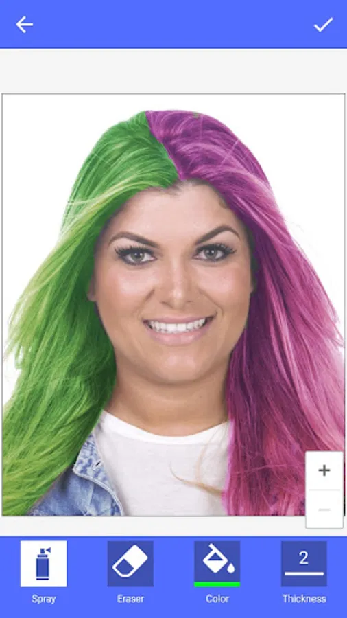 Change hair color: Use 'spray' function to paint your hair with any color.