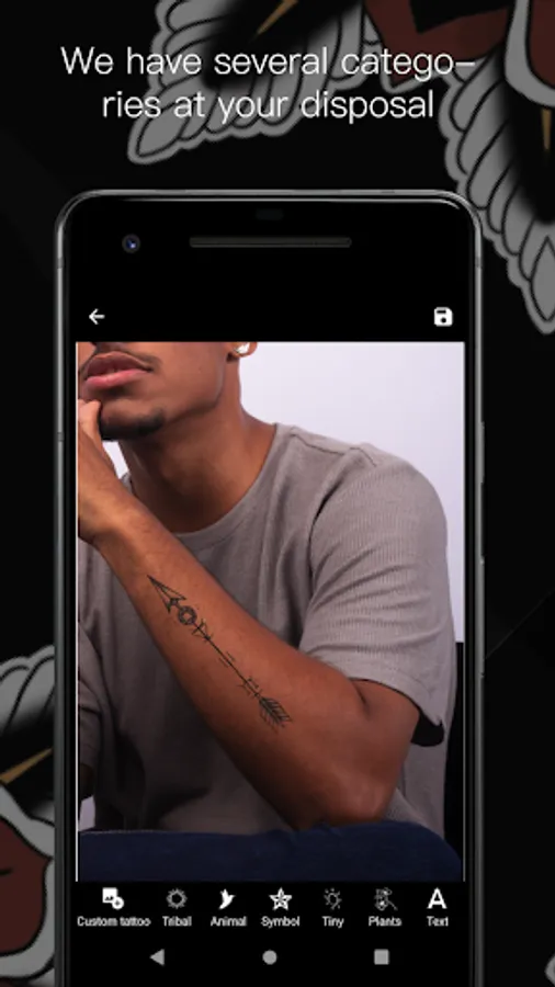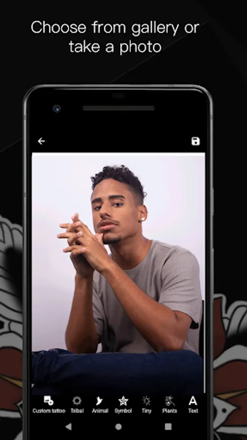 Apply the best tattoo design to your photo with the Tattoo Design Maker app!
