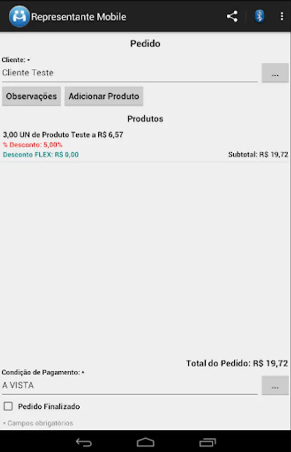 Mobile rep is an application designed for sales representatives and external vendors, providing that they can register sales orders via tablet or smartphone (no screen limitations) in a simple and fast way. Mobile representative was thought in the sales professional vision, bringing a usability based on a consulting practice with vendors, agents and distributors and related companies managers.