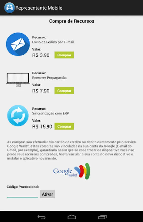 - Synchronization with ERP (requires one-time payment of R $ 15.90).