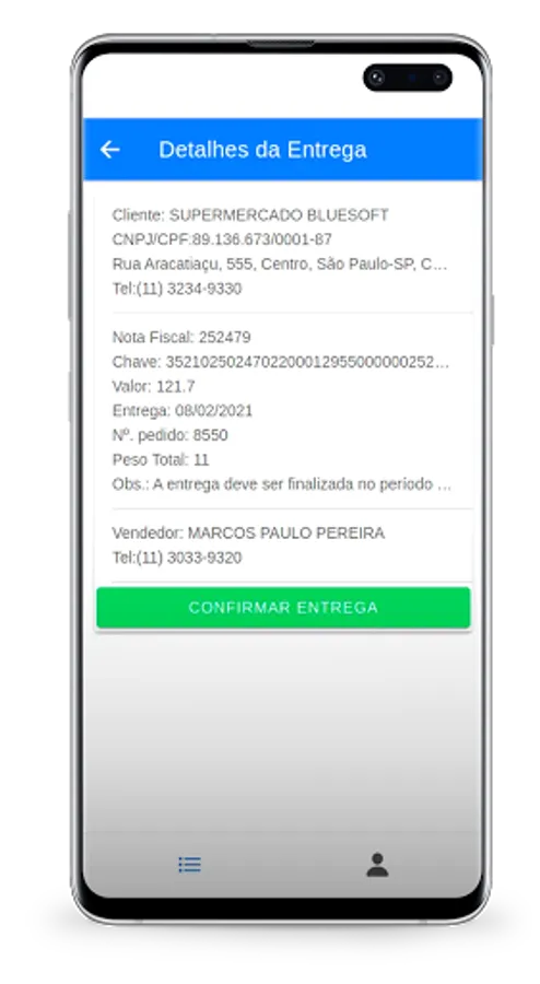 Delivery control application for drivers, integrated with Bluesoft ERP.