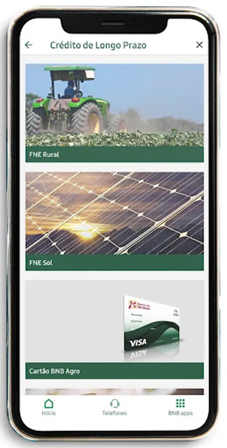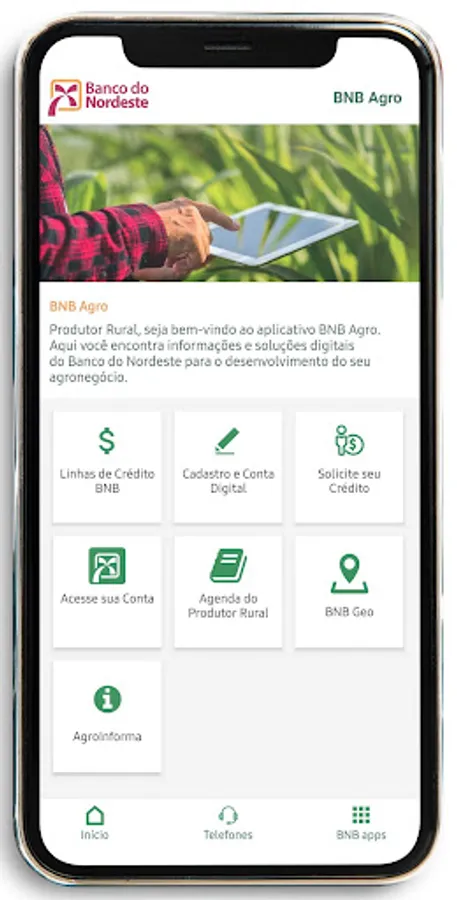 Mobile agribusiness management app, allowing access to information on the agro market, products from the BNB portfolio and management tools for rural producer clients.
