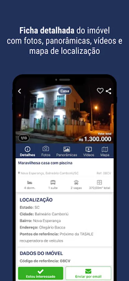* Detailed information about the property, photos, panoramic views, videos and location map;