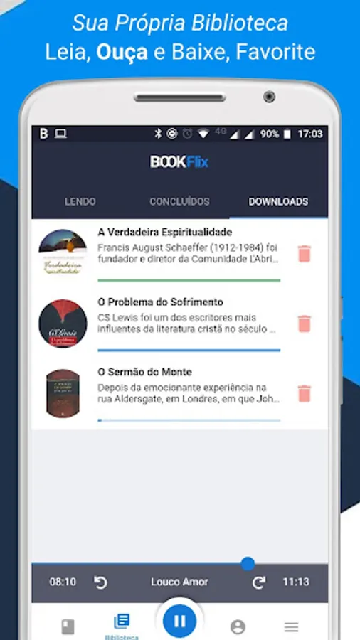 * GERENCIE SUA BIBLIOTECA: Marque quais resumos você quer ouvir e controle qual o progresso de leitura de cada um.