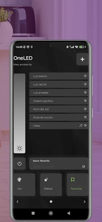 Solid colors are intense and striking, but sometimes what is needed for the environment is mixed lighting and that's why OneLED provides a list of color palettes that seek to represent and set a varied and cozy scene. Various shades of green are present in the “Forest” palette, for example, and “Cloud”, varying shades of blue.