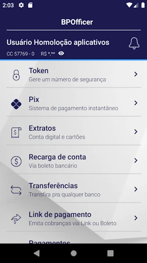 Transfers: Make DOC / TED transfers or transact your resources for free to another BPOfficer account.