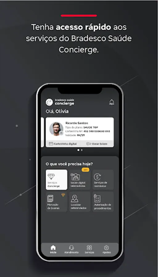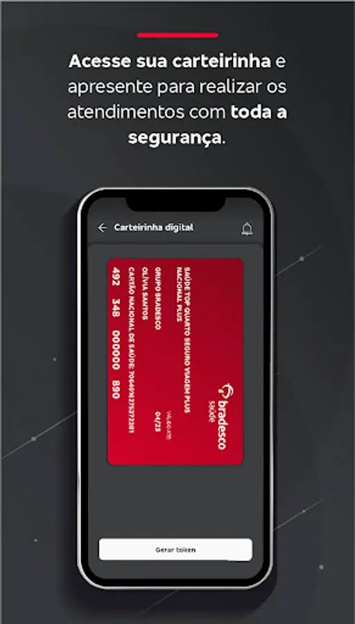 And more: Locate nearby pharmacies, see the features of your plan, the benefits of the insured, contact phones Bradesco Health Concierge and the timing and vaccination records.