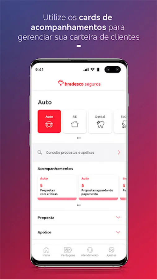 Simplify the sales process and optimize your time. The Bradesco Seguros Corretor app is technology working in favor of your business. A simple and complete tool to help you sell more and better.