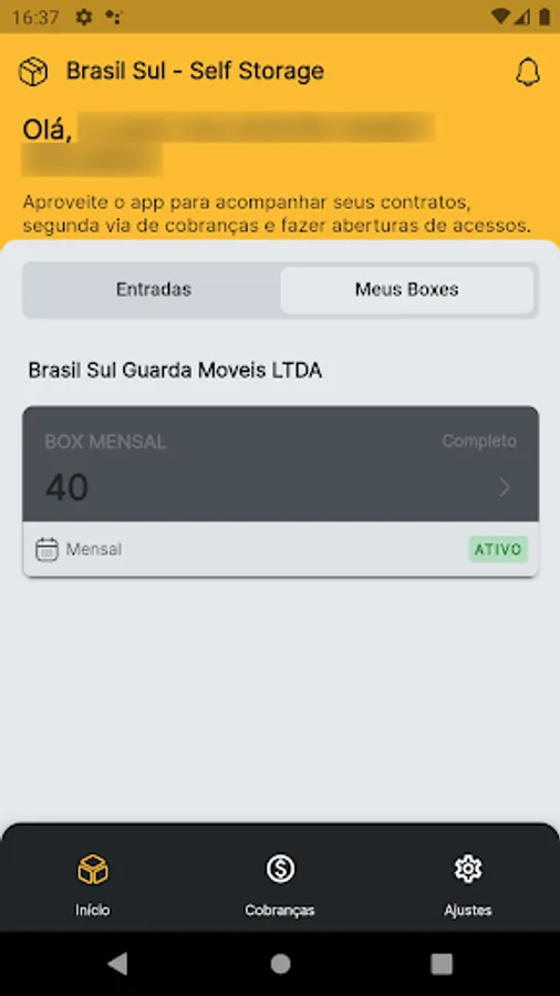 Through the Brasil Sul App, you can manage your contracts, view your charges and even open Self Storage doors and gates