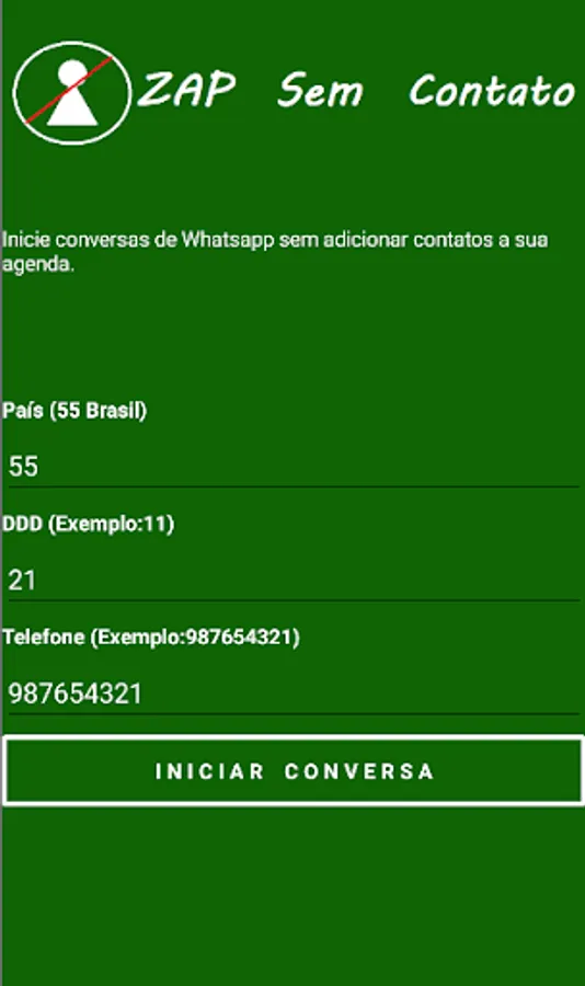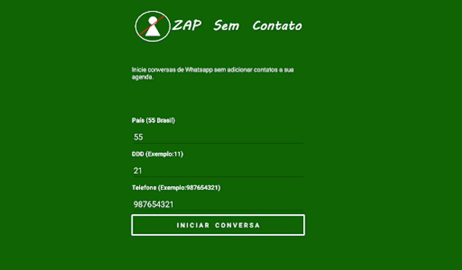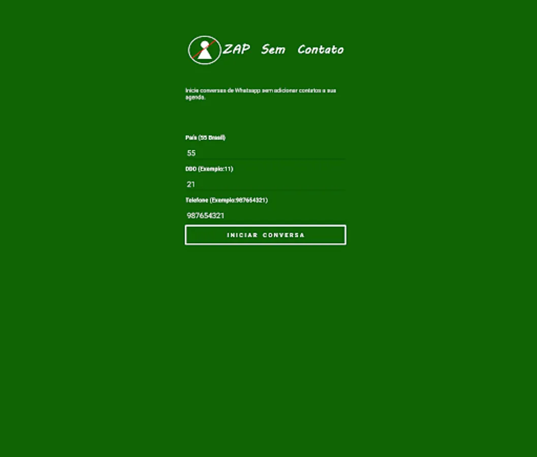 Enter the mobile number you want to start a Whatsapp conversation and click the Start Chat button. You will start a ZAP conversation without creating or saving contacts in your phonebook.