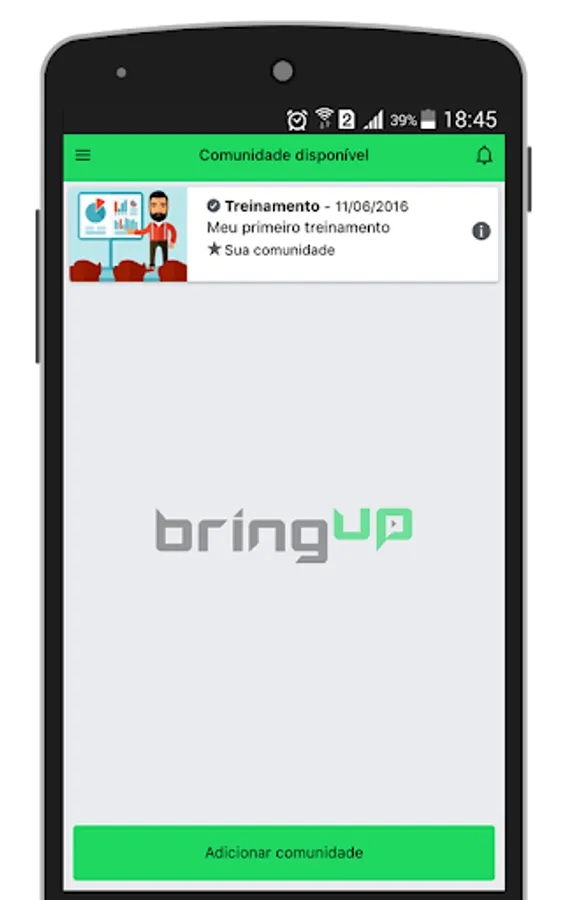 What resources the BringUp View available? In BringUp View the student access on your smartphone, tablet or computer the contents of the communities participating. Several features facilitate their interaction and learning, such as content organized in communities of interest, receiving notifications for each new added or changed content can comment and enjoy the activities, test knowledge through one wanted, among others.
