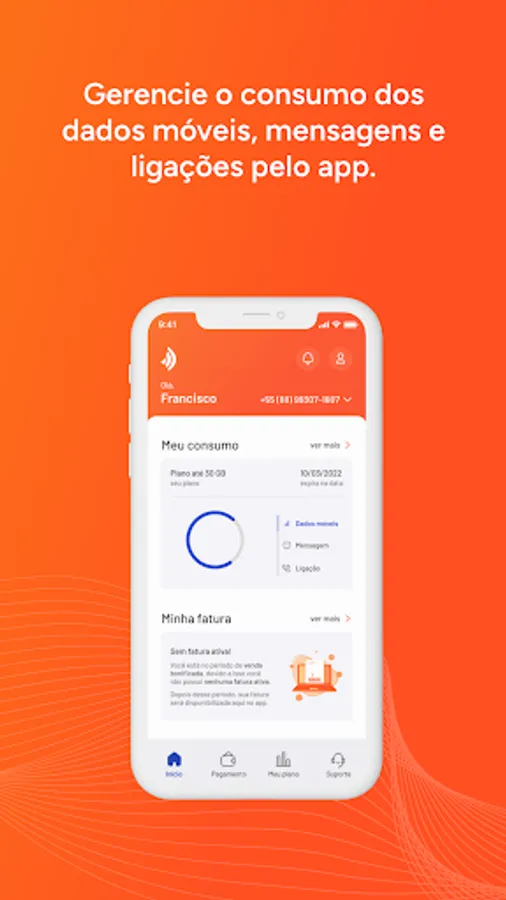 - Pay the monthly invoice for your number via Pix, boleto, credit card or automatic debit via the app;