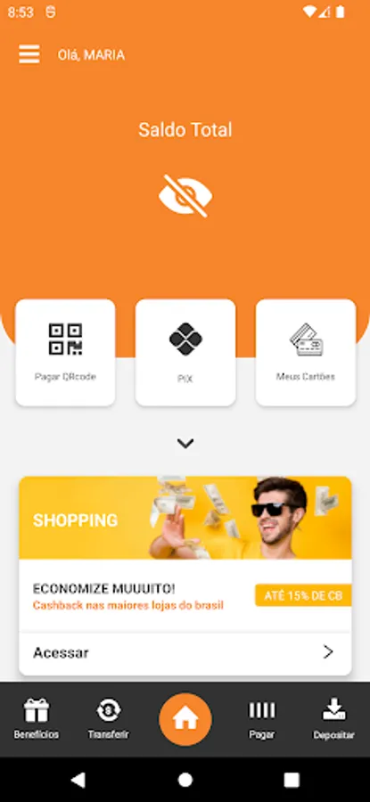 Complete digital bank: digital account, investments, shopping, credit card, debit card, virtual card, QR Code for payment, loans, real estate financing, insurance and much more!