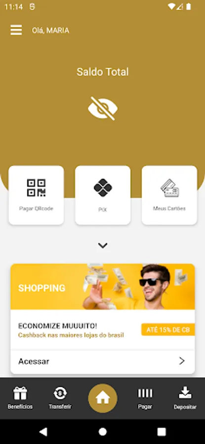 Complete digital bank: digital account, investments, shopping, credit card, debit card, virtual card, QR Code for payment, loans, real estate financing, insurance and much more!