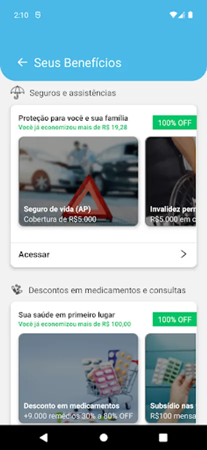 MyBe is the best benefits card in Brazil. With it, you have access to health, education, Discounts and Cashback and you also get life insurance and access to Credit Cards, Personal Credit, all fast and in the palm of your hand