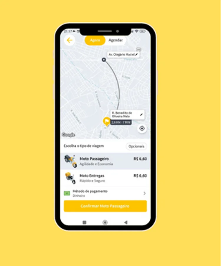 Our application allows you to call one of our motorcycle taxis and follow the vehicle's movement on the map, being notified when it is at your door.