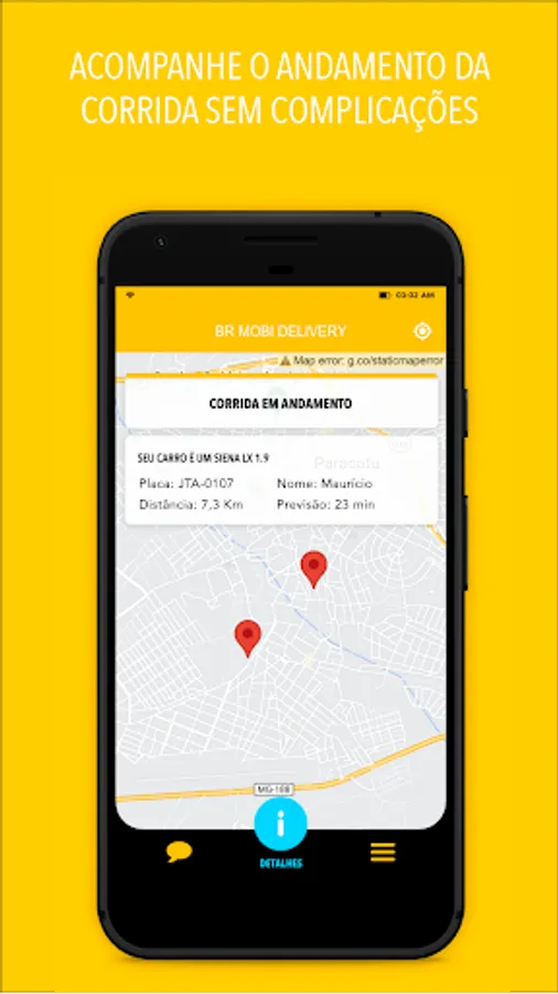 Our application allows you to call one of our motorcycle taxis and follow the vehicle's movement on the map, being notified when it is at your door.