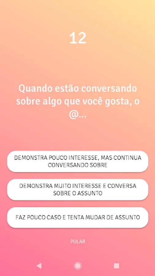 Each question has a score and the result is calculated based on your answers. The test requires that you pay close attention to the other person to answer questions accurately.
