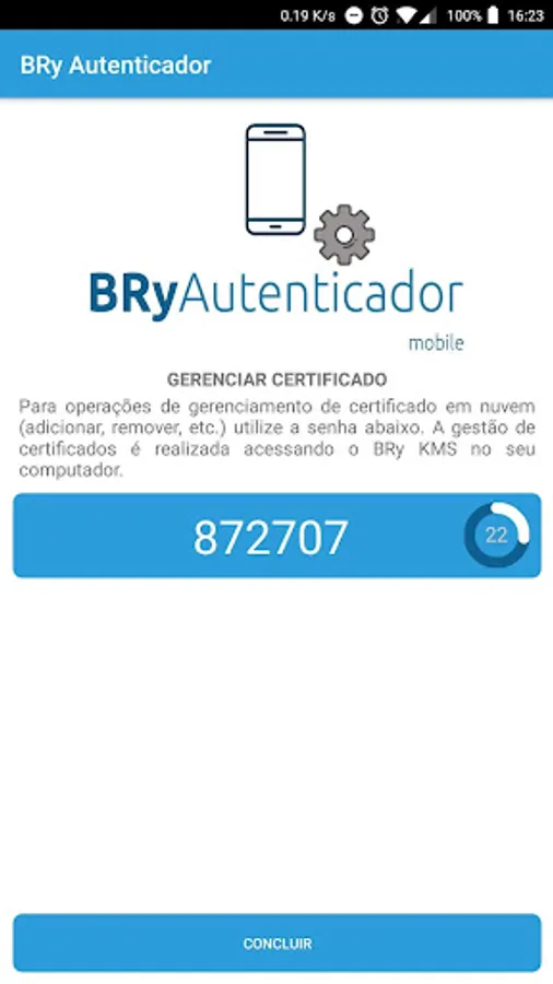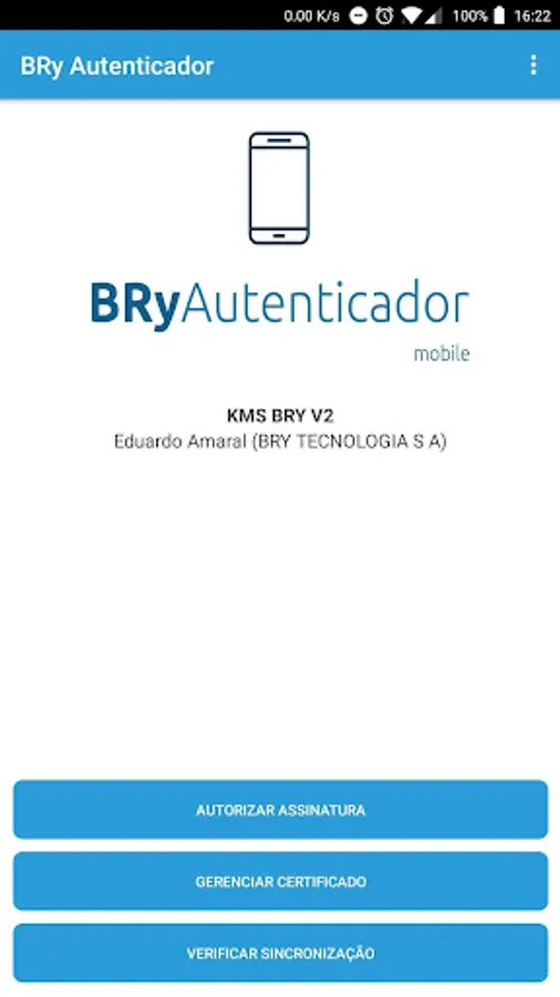 The Bry Authenticator is the app for mobile devices used to secure exclusive control of your digital certificate installed on the KMS Bry.