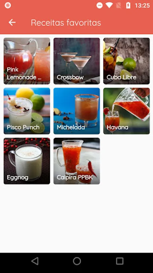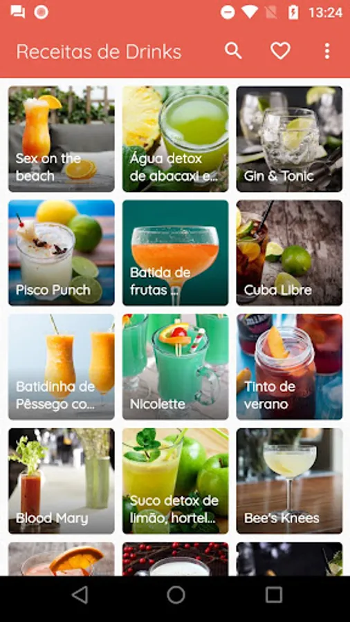 The Drinks Recipes app will help you prepare drinks at home. With a good variety of cocktails, you will find recipes like: