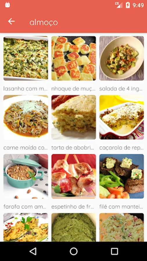 The recipes (entirely in Portuguese) have a nutritional table, ingredients and method of preparation. They are organized in a list, such as: breakfast, snacks, lunch, dessert, dinner, etc. In addition to special lists, such as cold recipes, cakes, meats and more. You can save the recipes to put together your own low carb diet menu.