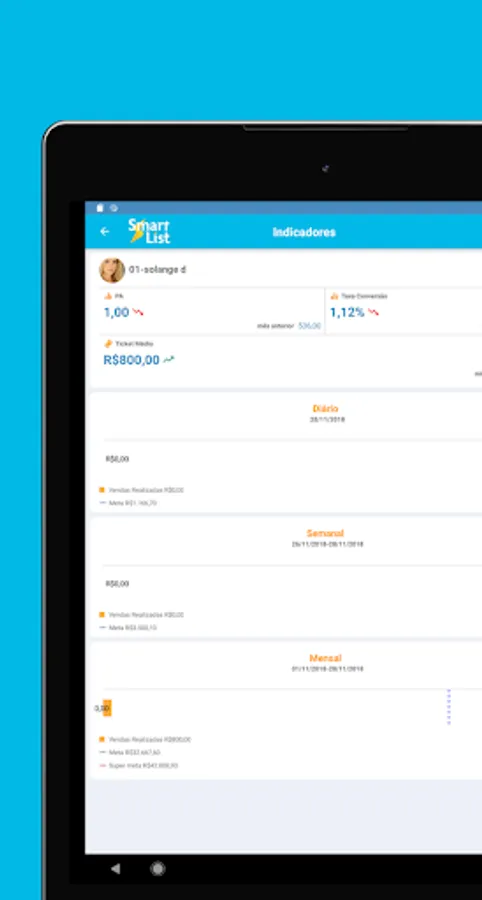Each salesperson records their service and, by simply touching the screen, details the reasons for the cases in which the sale did not occur.