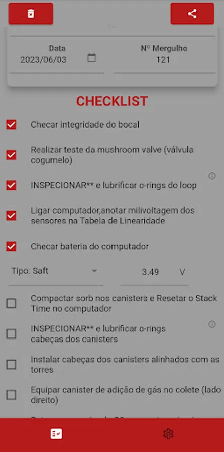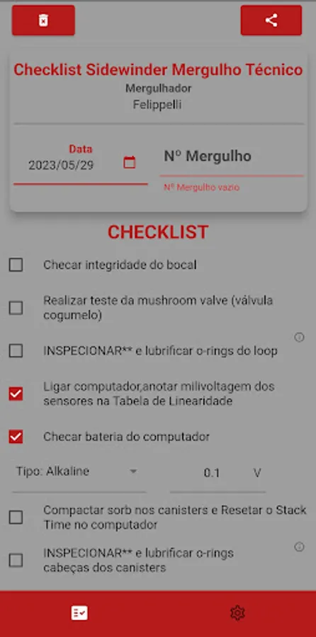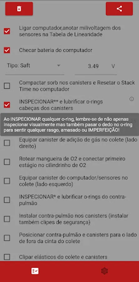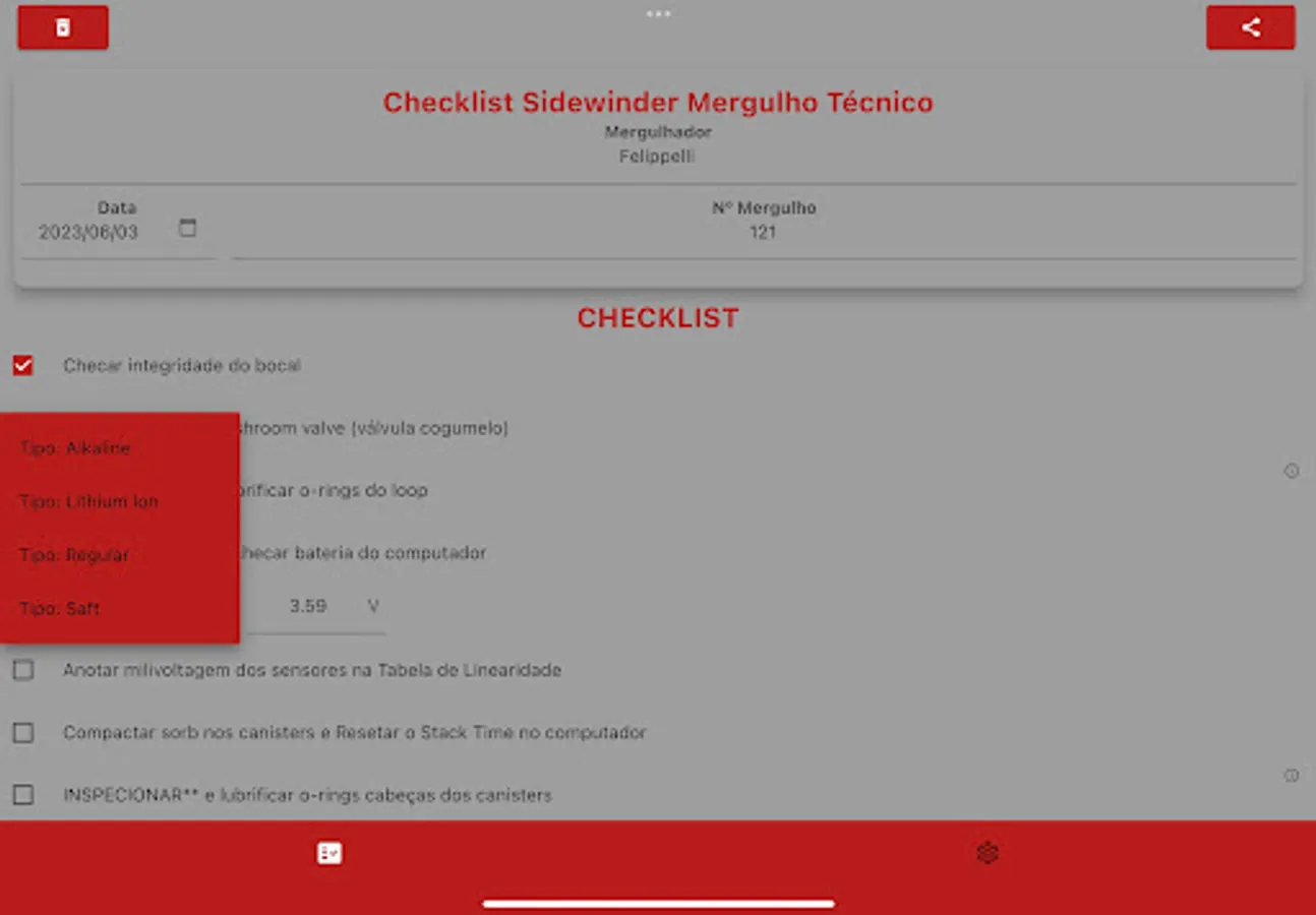 Forget wrinkled or wet/smudged sheets of paper. Through a modern and intuitive App, go step by step through the assembly and configuration of your CCR unit, avoiding forgetting and making your dive safer.