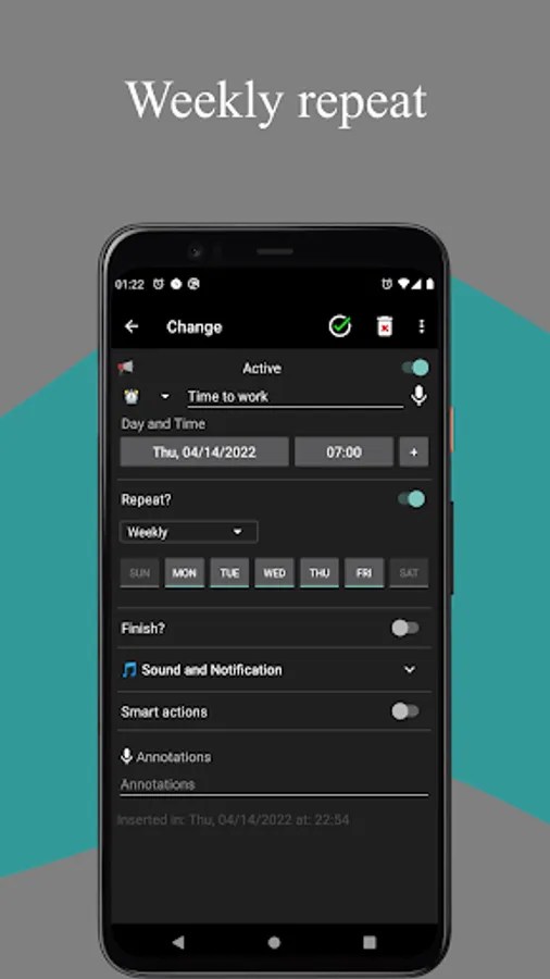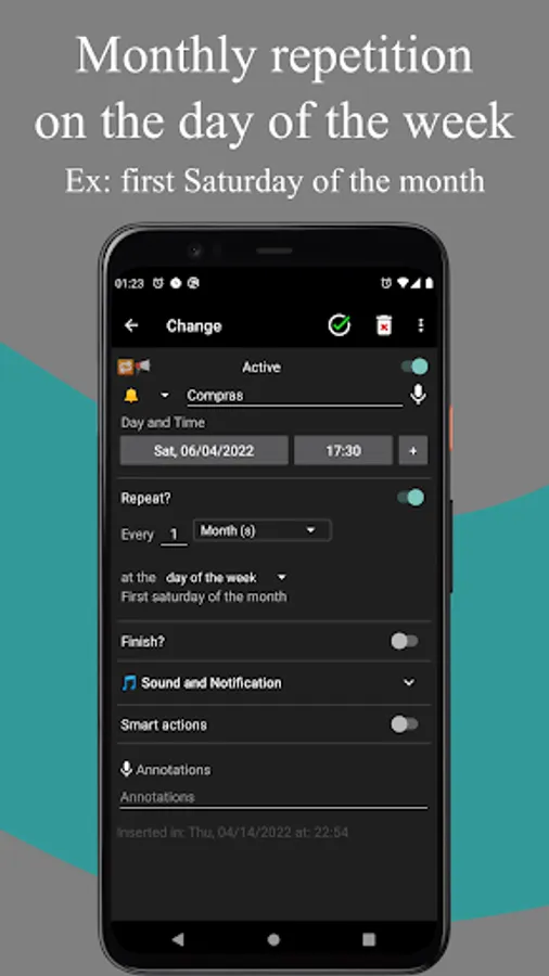 Types of repetitions: Hour, Day, Weekly, Monthly, Yearly