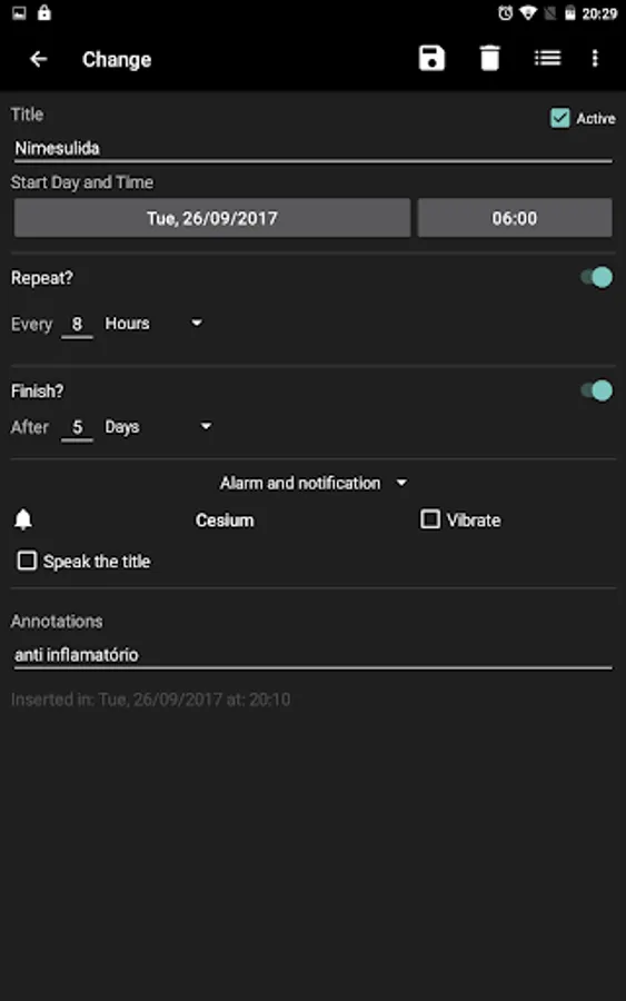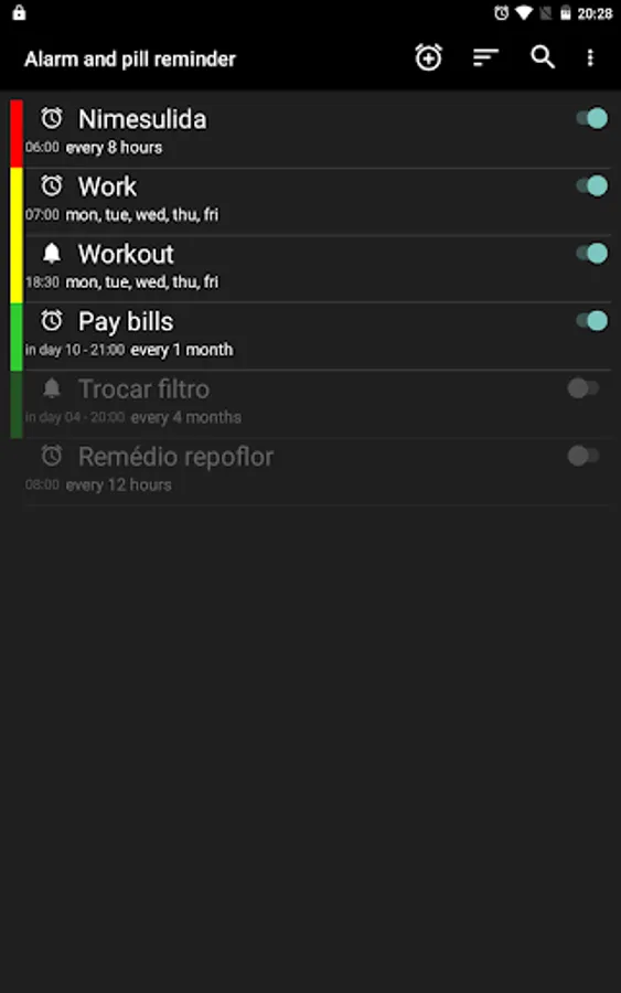It allows to put multiple executions for the same alarm, thus ensuring a great versatility in the repetition settings, it is possible for example to set for the alarm to run on certain days every month, or to repeat daily at non-synchronized times (after meals for example)