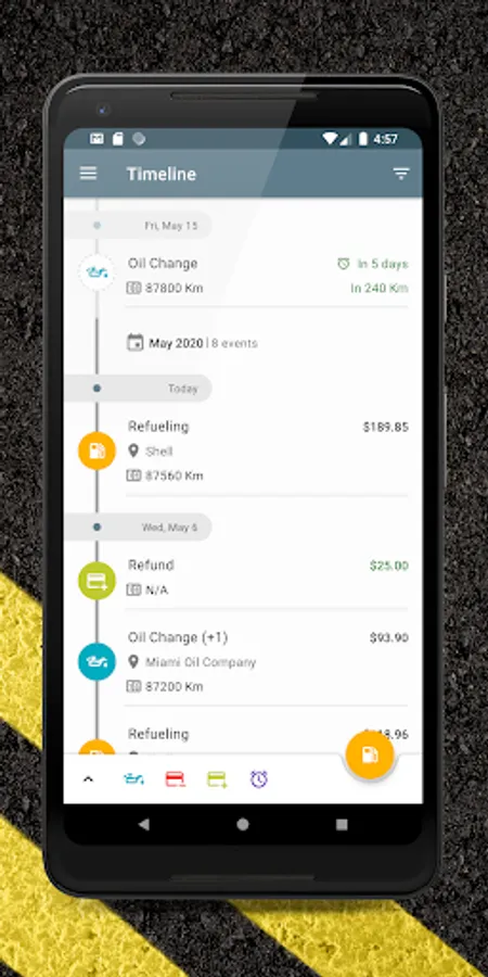 Schedule time or odometer-based reminders for regular services and expenses. Carango will notify you when it is time, for example, to do an oil change or to pay a tax.