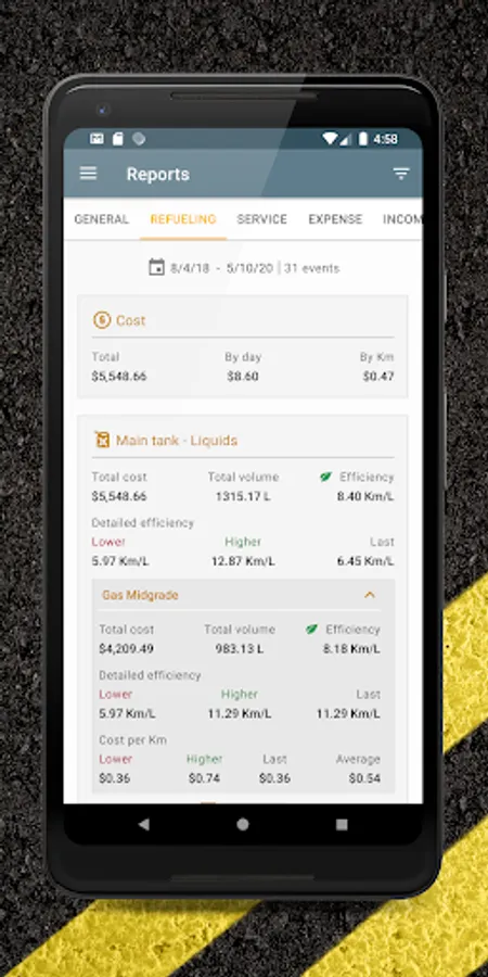 With this app you can manage MULTIPLE VEHICLES and register an unlimited number of refuelings, services, expenses and incomes for your car. On top of that, Carango will process your data and give you detailed reports like daily/monthly costs, average consumption, cost per km, most expensive gas stations, service details, installments frequency and much more. With all that information you know exactly where your money is, helping you to take decisions and save money.