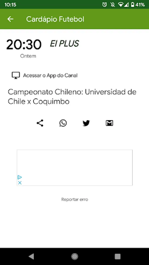 The application does not broadcast matches, but shows on which channels the matches will be broadcast and the respective applications (when available).