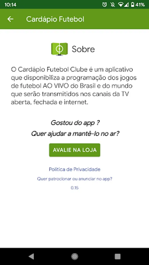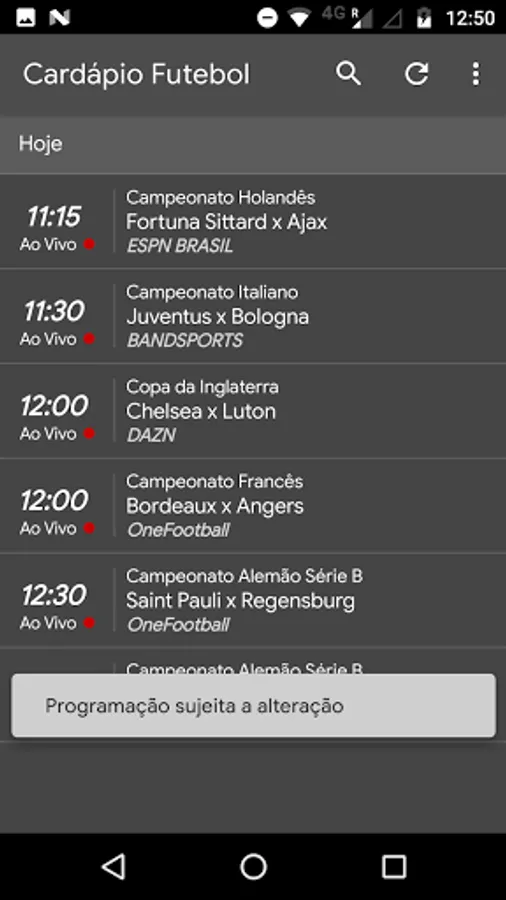 Cardápio Futebol is an application that provides the programming of LIVE football games from Brazil and the world that will be broadcast on TV channels (open and closed) and internet.