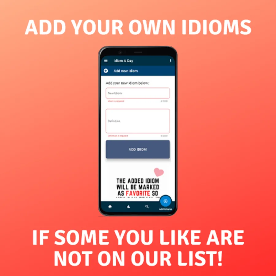 You can add more idioms as you wish in case you find some other interesting ones that are not present in our current database with over 2000 idioms!