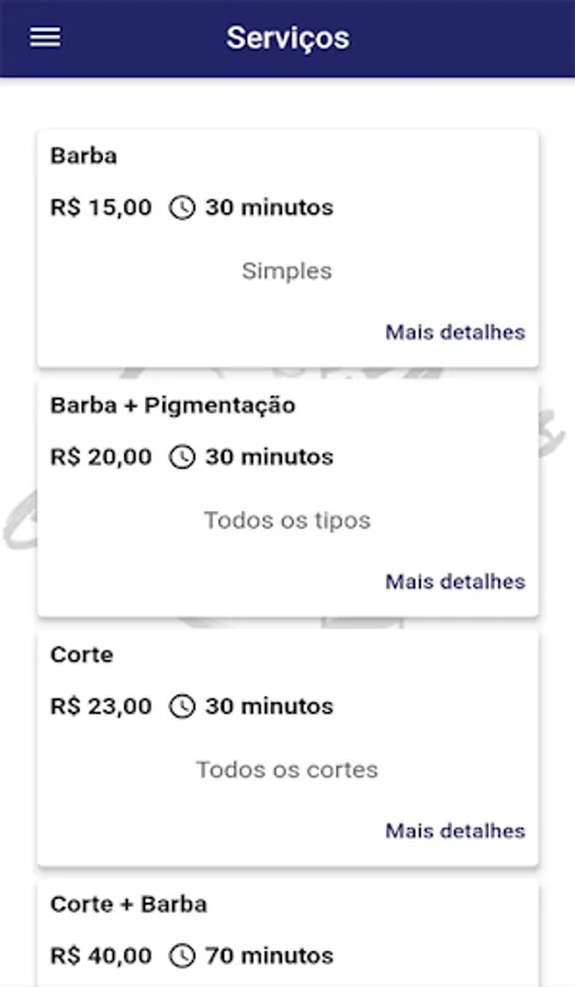 Set up your schedule and see all the available information about schedules, information about the services provided by the barber shop, such as approximate time, values and models.