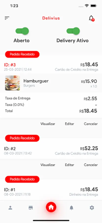 Application aimed at establishments that are part of the Delívius application to receive their orders.