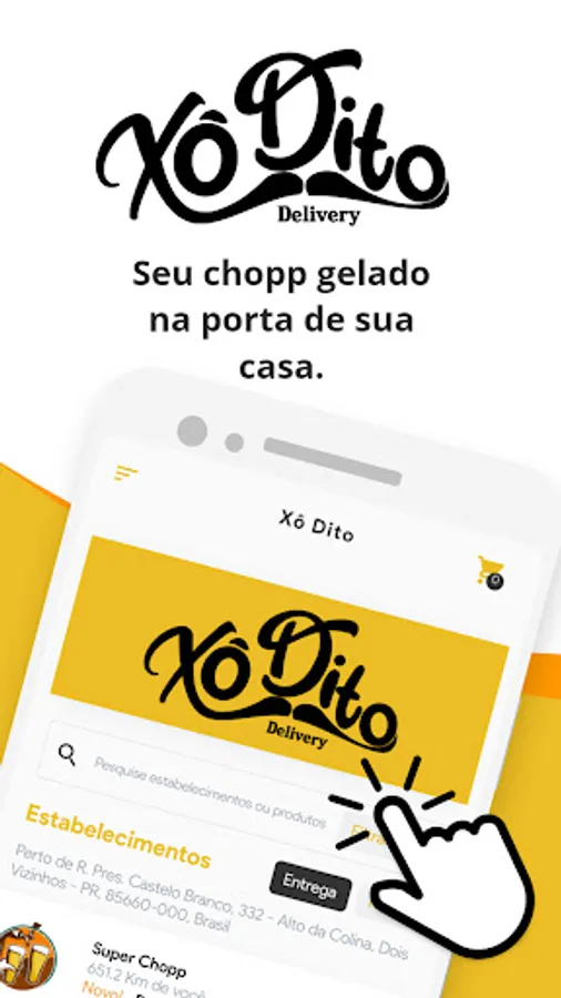 Shoo Dito - Delivery de Chopp facilitates the delivery service in the city. Place orders at your favorite establishments and receive in the comfort of your home. Have in your hands all the products from your favorite store and receive them in the comfort of your home, with practicality and safety. It's simple and safe!
